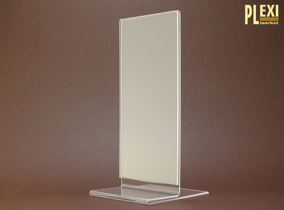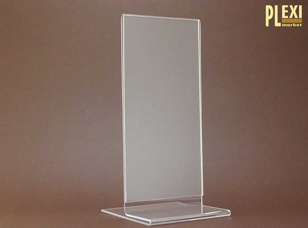 Suport meniu din plexiglas transparent pentru printuri cu dimensiunea 100 x 210 mm.