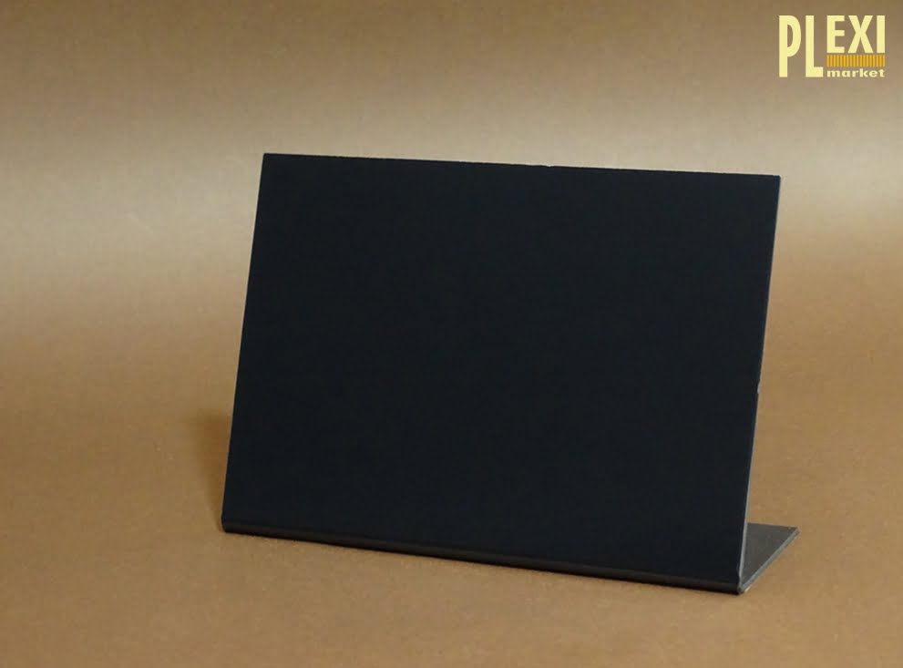 Suport înclinat orizontal (landscape) confecționat din HIPS negru (PVC rigid) de 2 mm grosime.